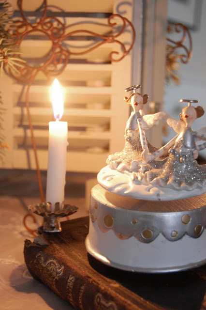 Et lite fint stillben som pyter opp - en gammel bok, lys i en gammeldags lysholder og en herlig spilledåse, som spiller den lystige "jingle bells" når jeg trekker den opp!